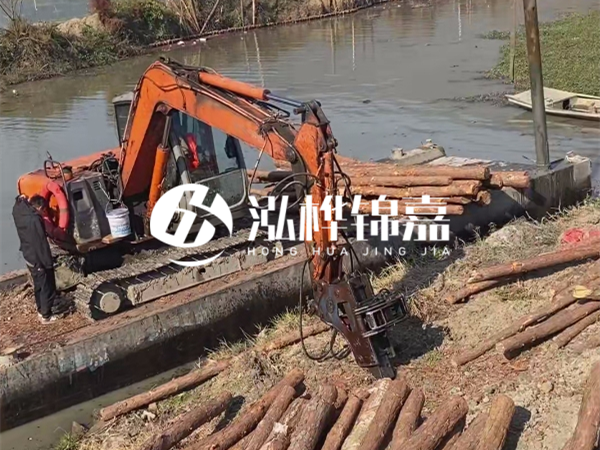 水挖(也就是水上挖掘機)的液壓錘功率直接決定能打多長的樁。普通 60 型水上挖掘機,液壓錘沖擊力有限,最多打到 5 米就很吃力了 —— 就像人用小錘子敲長釘子,容易把釘子敲彎。而大型 200 型以上的水挖,液壓系統能提供足夠的沖擊力和穩定性,才能駕馭 8 米以上的長木樁。泓樺錦嘉能打 8 米木樁,首先靠的就是設備優勢。他們用的是定制款水上挖掘機,液壓錘經過改裝,沖擊力比常規設備提升 30%,而且機身配重更合理,在水面作業時減少晃動,避免長木樁因受力不均斷裂。